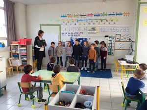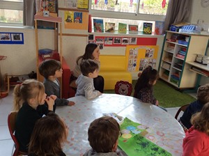 Lundi, les élèves de CE1 sont venus dire un album en anglais aux élèves de maternelle.