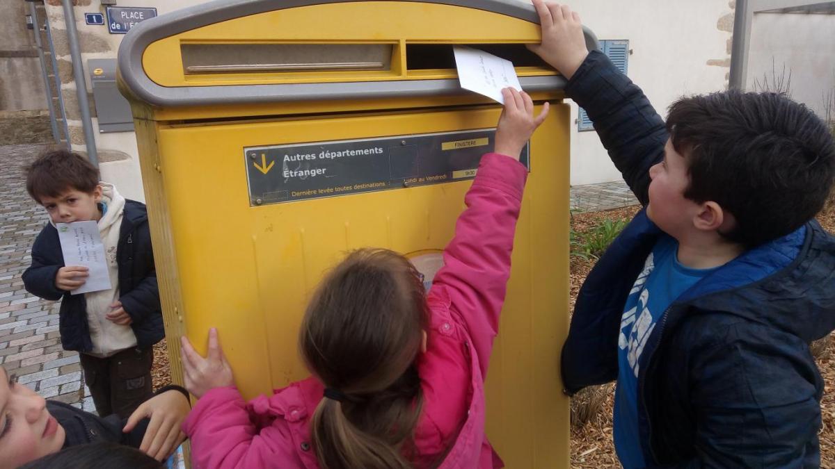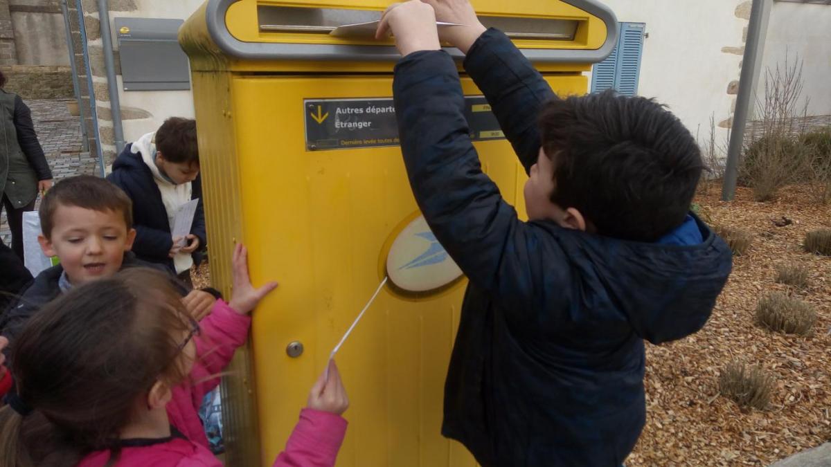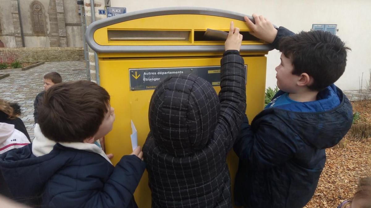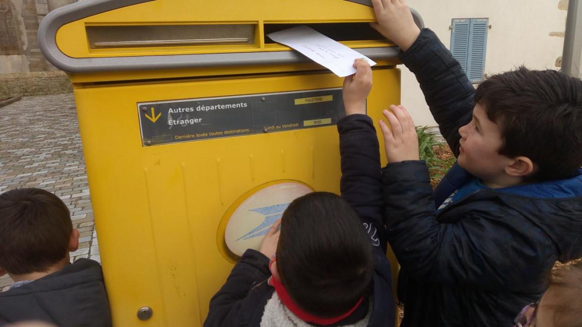 Il ne fallait pas se tromper de côté pour glisser notre enveloppe, cela n'était pas si simple ! Les plus grands de la classe ont pu aider les plus jeunes. Nous étions tous très impatients d'envoyer nos lettres !