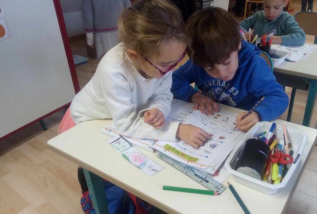 Dans la classe de CP, nous nous aidons à progresser. Les premiers à avoir terminé leur travail peuvent réexpliquer les consignes à d'autres enfants et les aider à mieux comprendre.